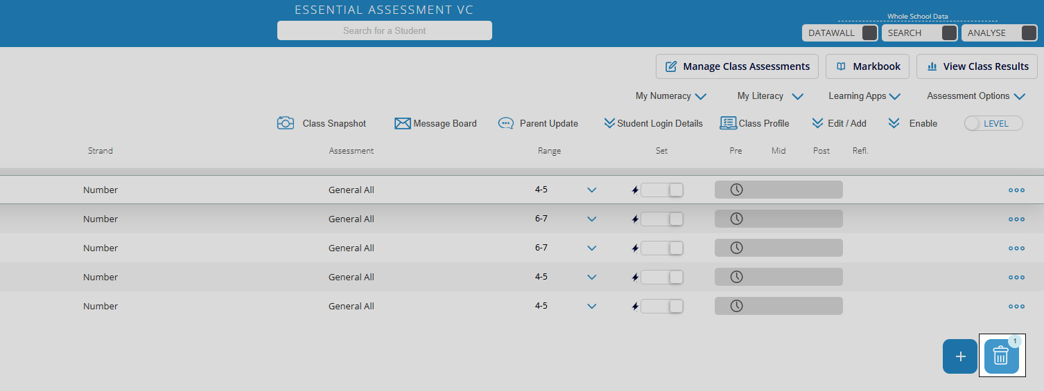 Deleted students will remain on the system for a period of time. If you need to retrieve the student, please get in touch with us at info@essentialassessment.com.au for assistance.