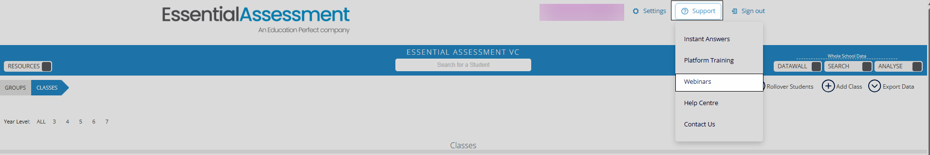 Our webinars are recorded, so you can easily re-watch and refer to them as you need, or catch up on a webinar if you missed the live event. Simply select Support and then select Webinars from the drop-down menu: