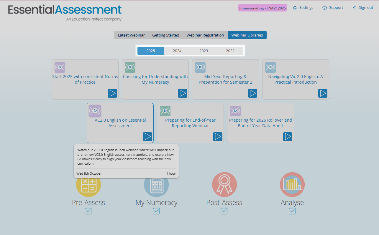 If you have questions about any of our webinars, please contact our friendly Support team at info@essentialassessment.com.au