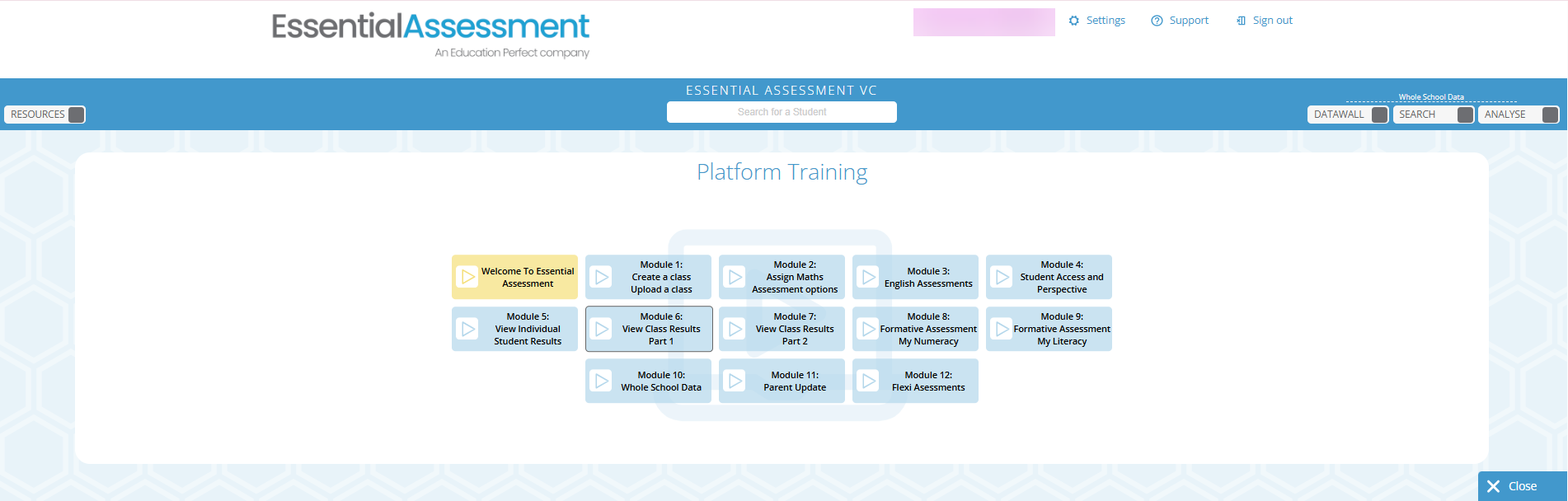 The Platform Training button directs you to videos on how to use different features.