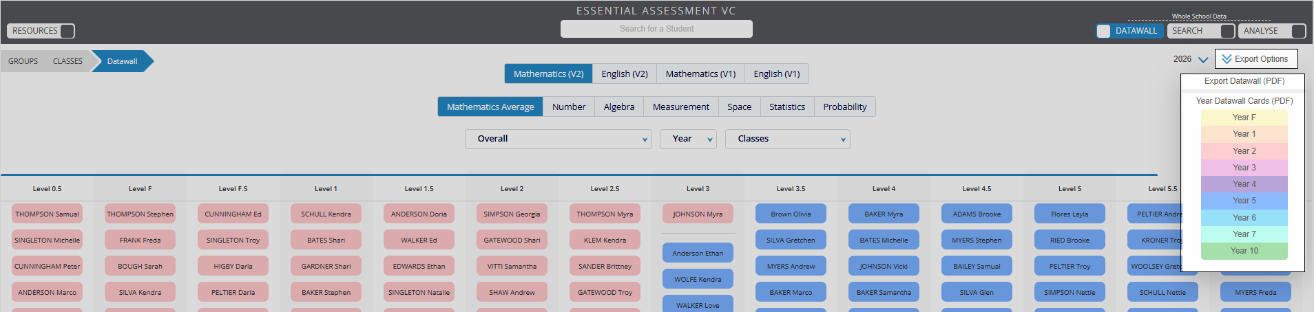 You can see a student’s overall average Mathematics and English scores directly on the Datawall screen, making class or whole-school data even easier to access and interpret. You are also able to export the subject average as a PDF.