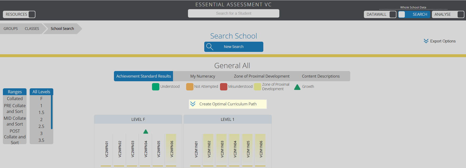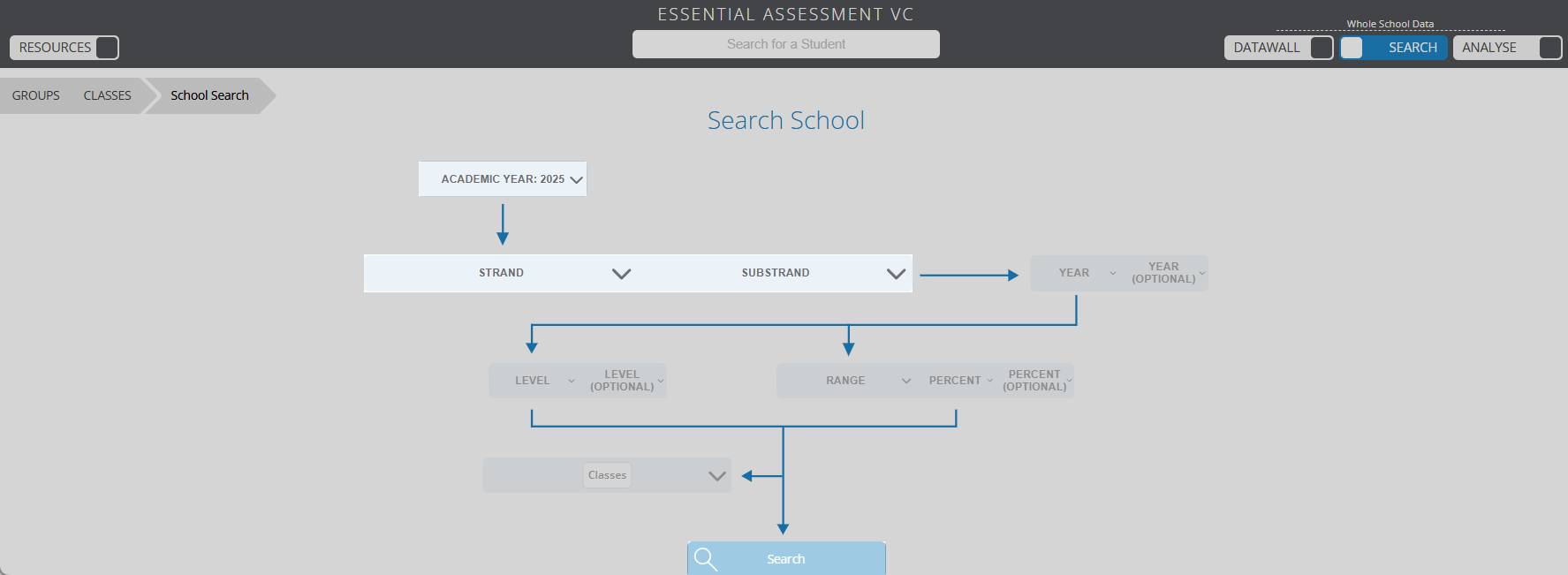 The Search function enables you to search for specific data for particular groups of students. This may help support planning for cohorts as you are able to filter the particular data set you require.