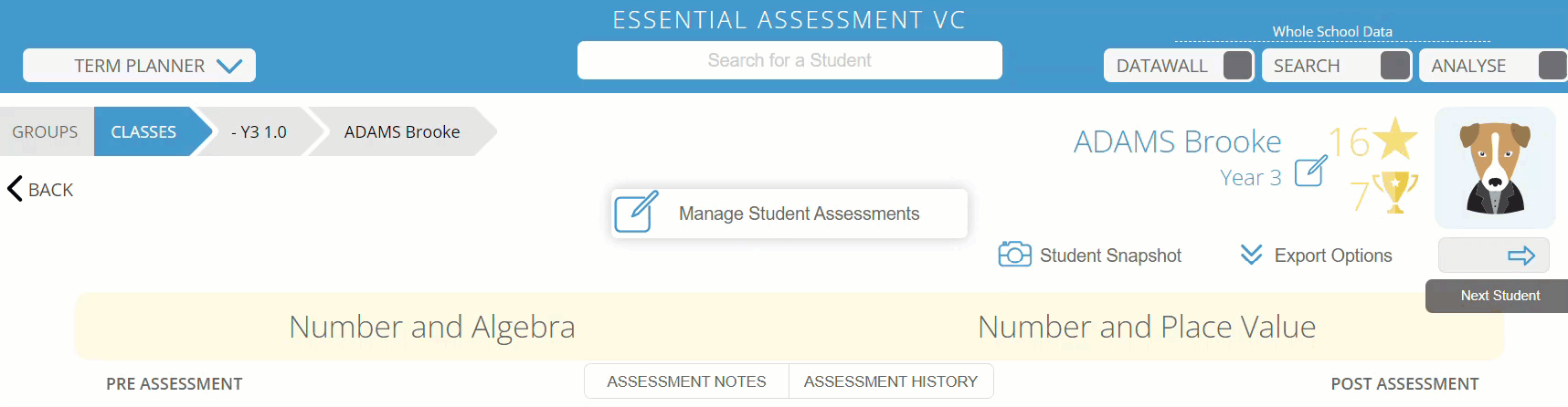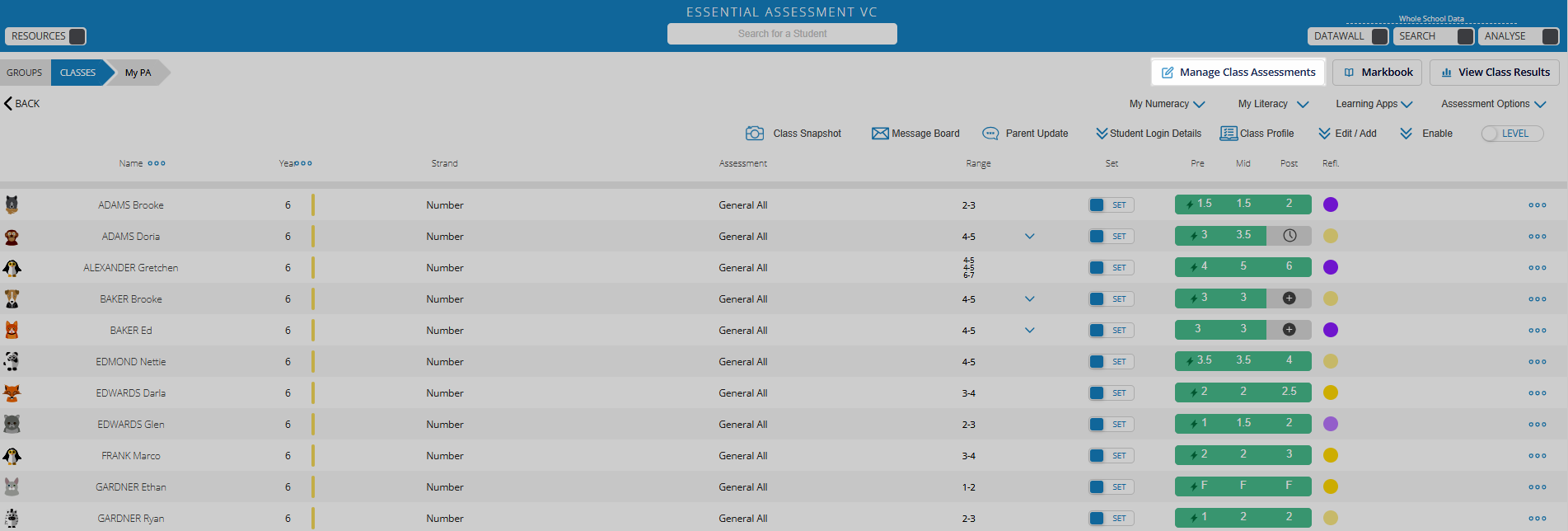 Firstly, click into the class and then Manage Class Assessments to load the desired assessment to your main screen.