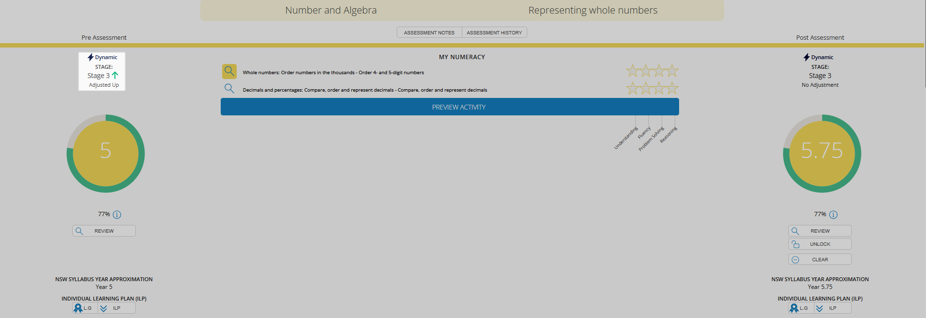 Good to know: the Dynamic functionality cannot adjust above what is available for the curriculum/syllabus within each assessment. For example, if the highest range available is Stage 3 or Level 6, students will be unable to move higher than this, as there will be no content available.