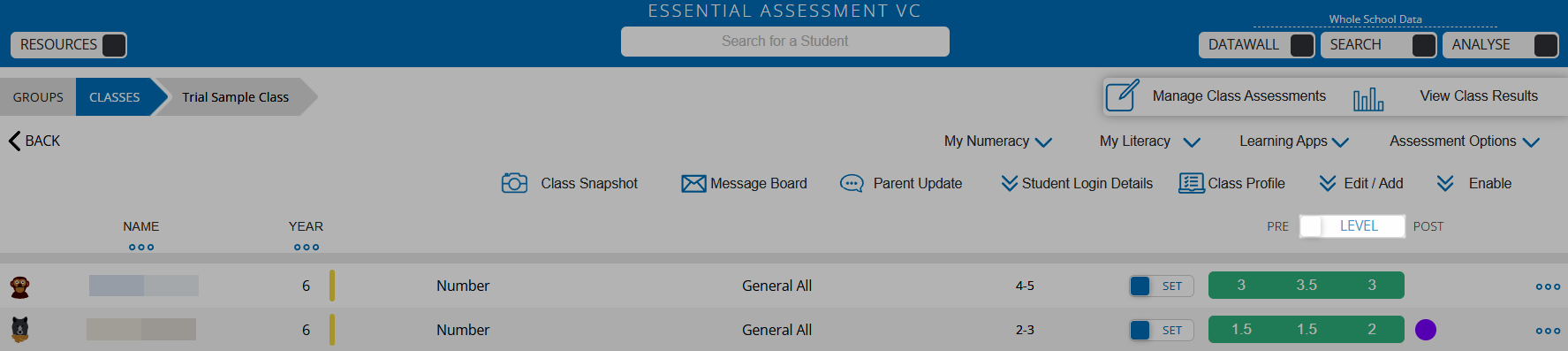 Here, you will be able to see their results as both the percentage and level. You will also be able to see the date the assessment was completed.