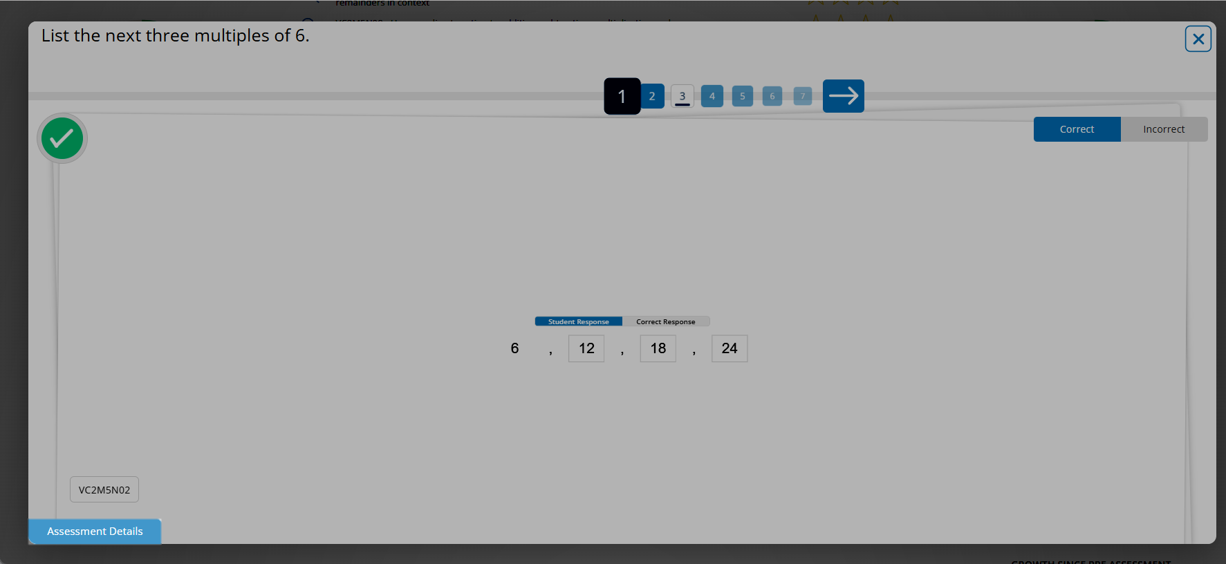 A pop-up box will appear, enabling you to view the student's assessment answers. Click Assessment Details to see an overview of the incorrect and correct answers.