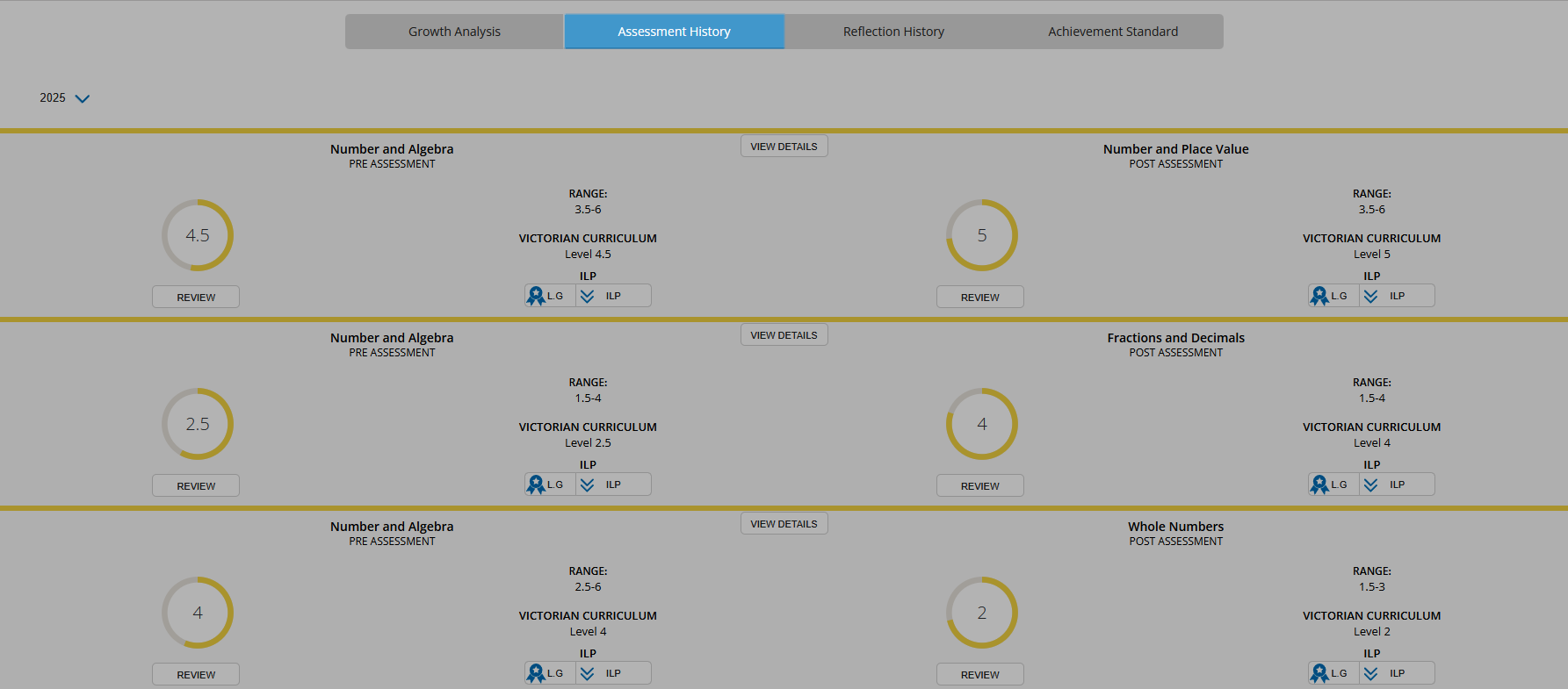 Individual student results can be reviewed via student profiles allowing you to have an in-depth look into students' understanding of assigned assessments.