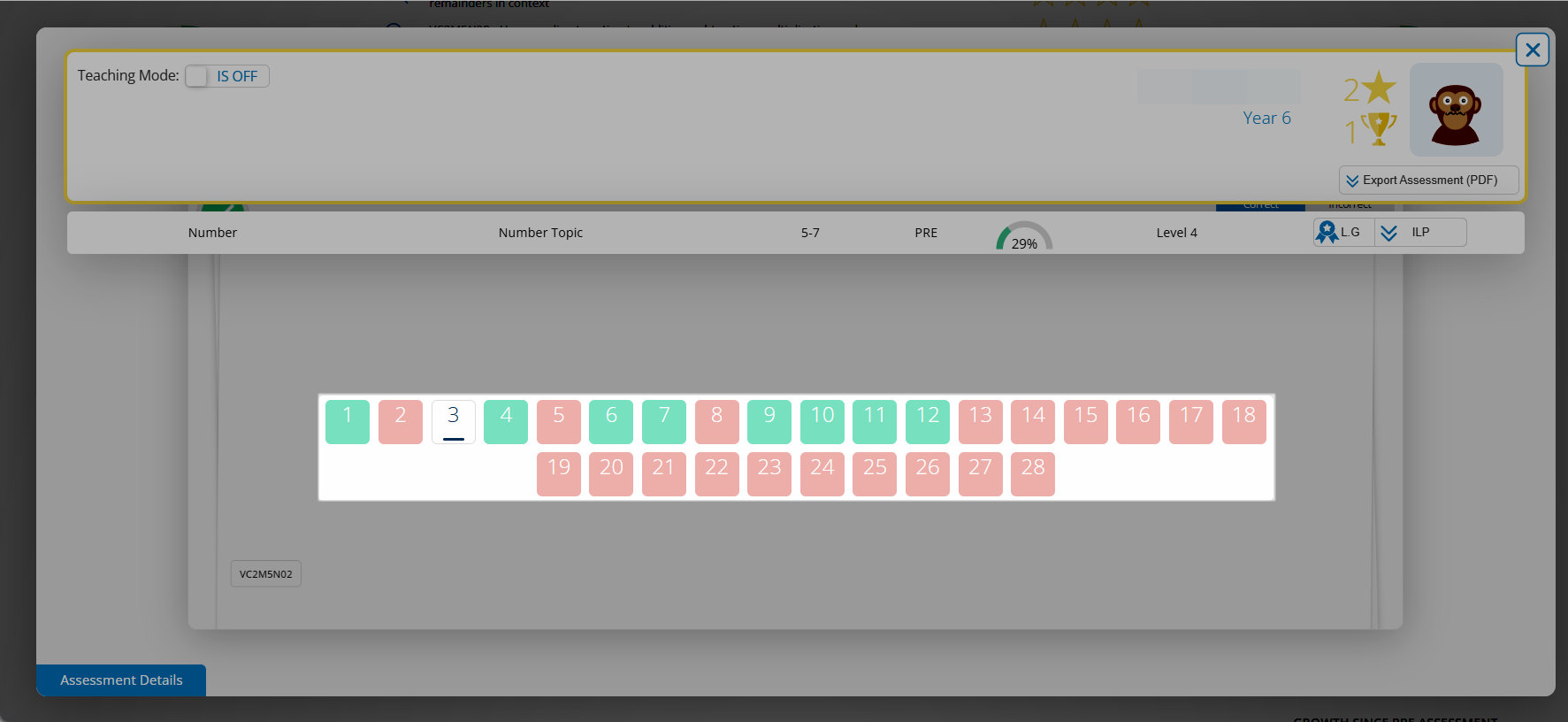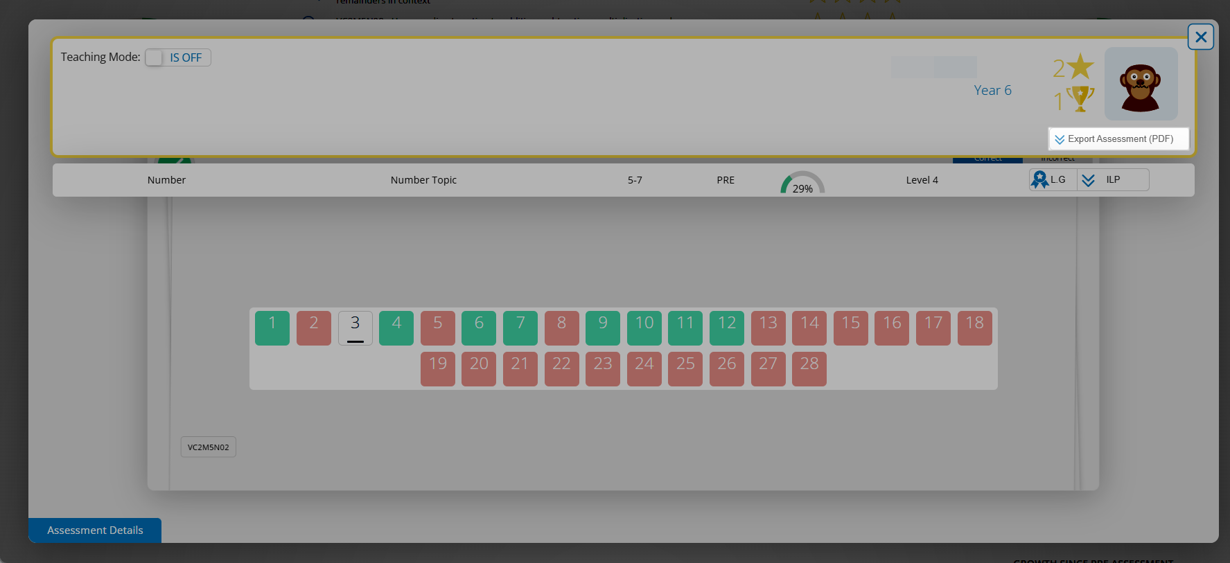 Teaching Mode allows you to sit with the student to go through the assessment so you are able to get an understanding of their answers. Teaching Mode will clear the answers so that there is a fresh assessment to work through.