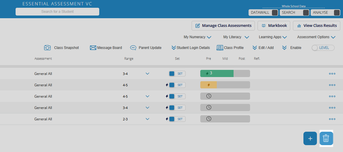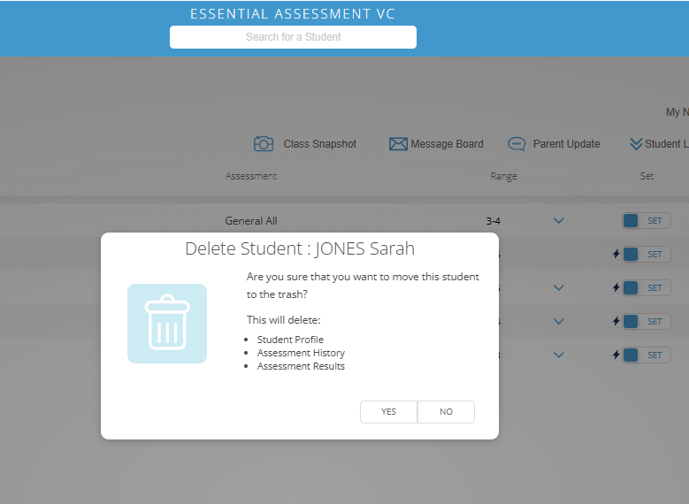 Deleted students will remain on the system for a period of time. If you need to retrieve the student, please get in touch with us at info@essentialassessment.com.au for assistance.