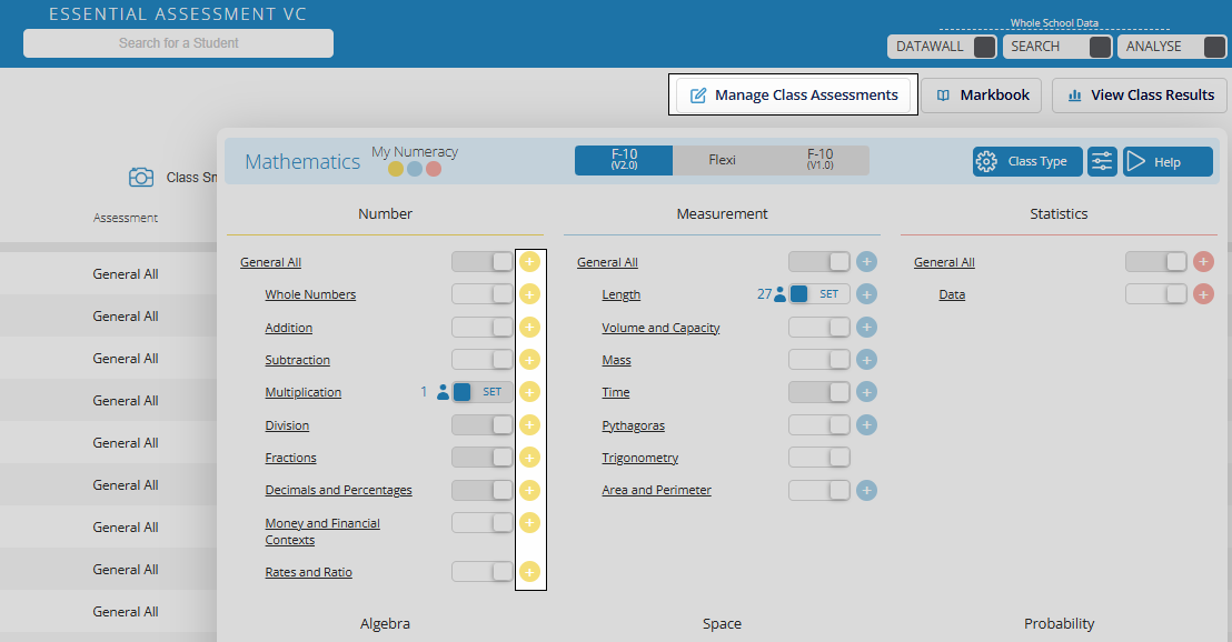 Click Manage Class Assessments and then click the coloured circle with the + icon.