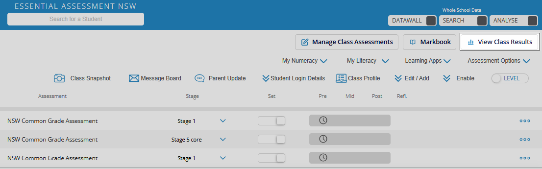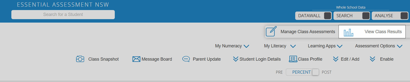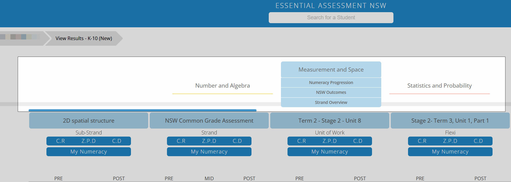 There are three views for analysing class results at the strand level: Numeracy Progression, NSW Outcomes, and Strand Overview.