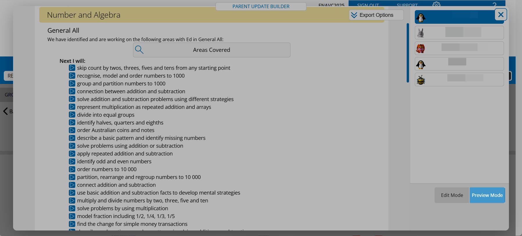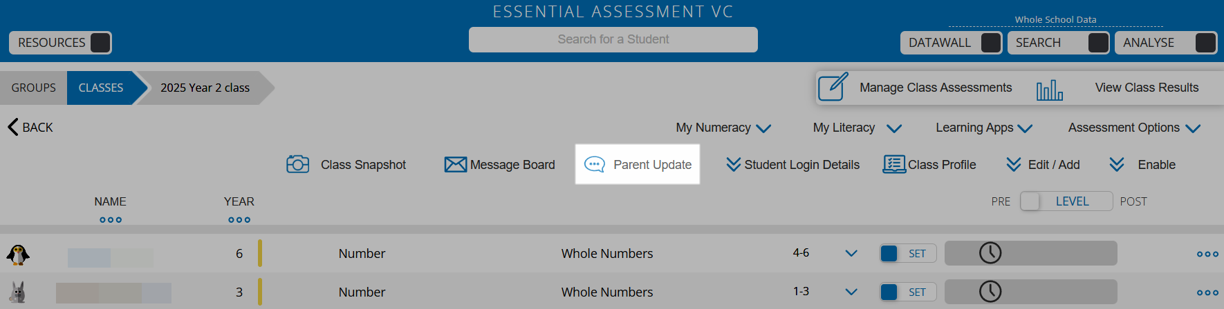 The Parent Update on Essential Assessment allows you to provide ongoing updates, which have been collated using data from your students, to parents and caregivers.