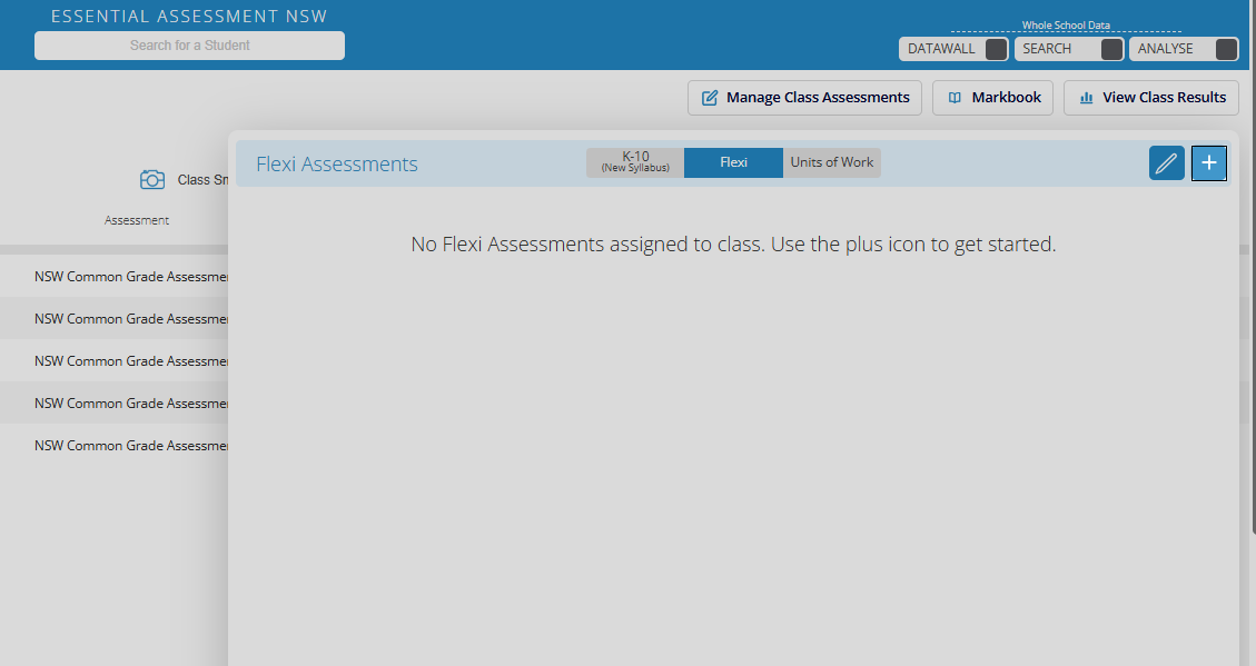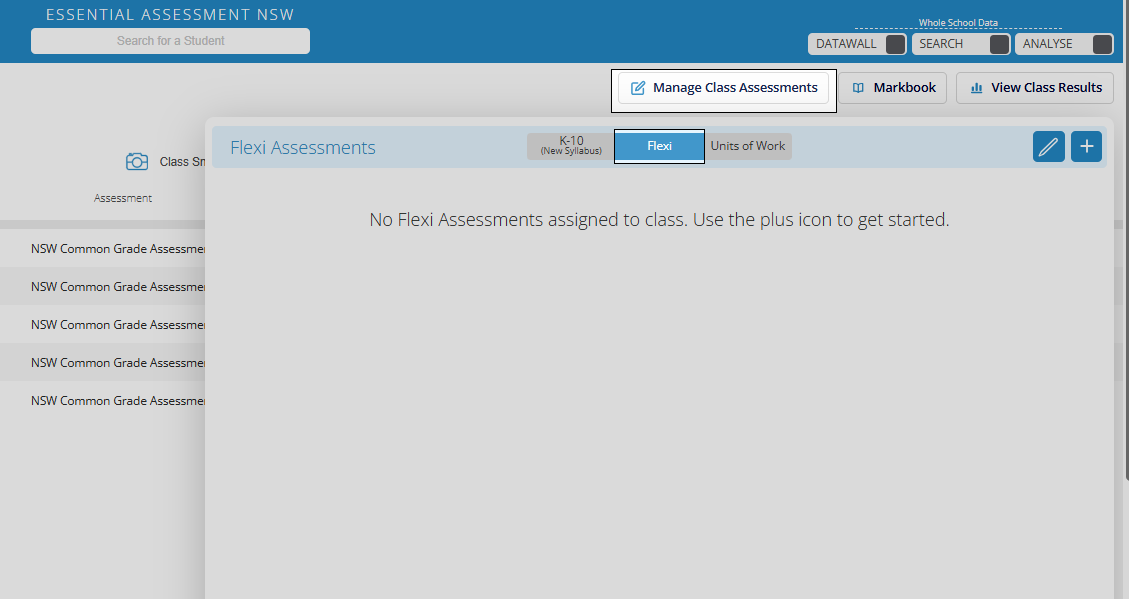 You can use the pencil icon in the top right next to the + icon to remove Flexi assessments from Manage Class Assessments in your class.