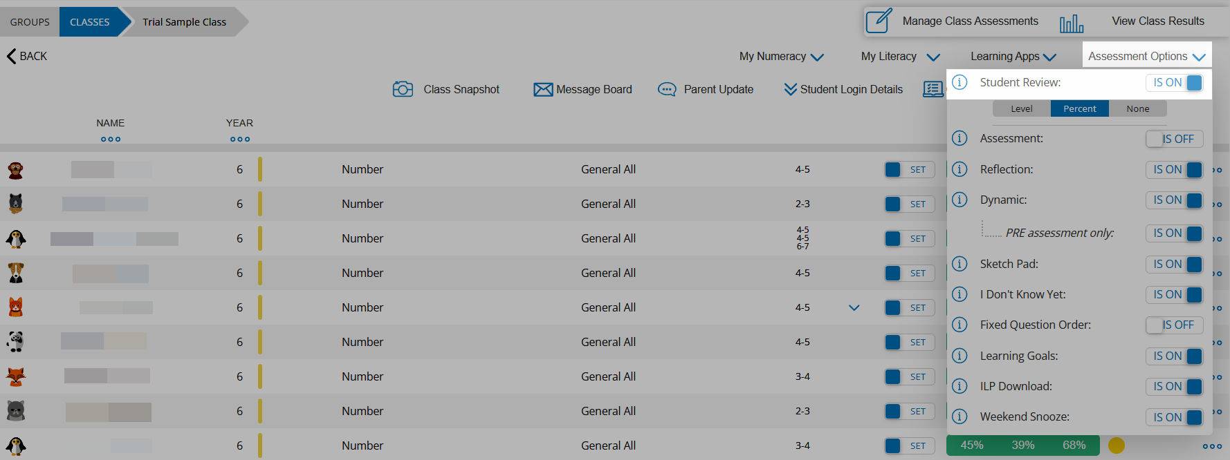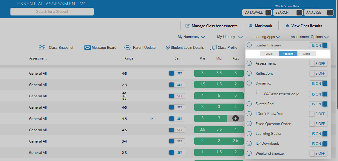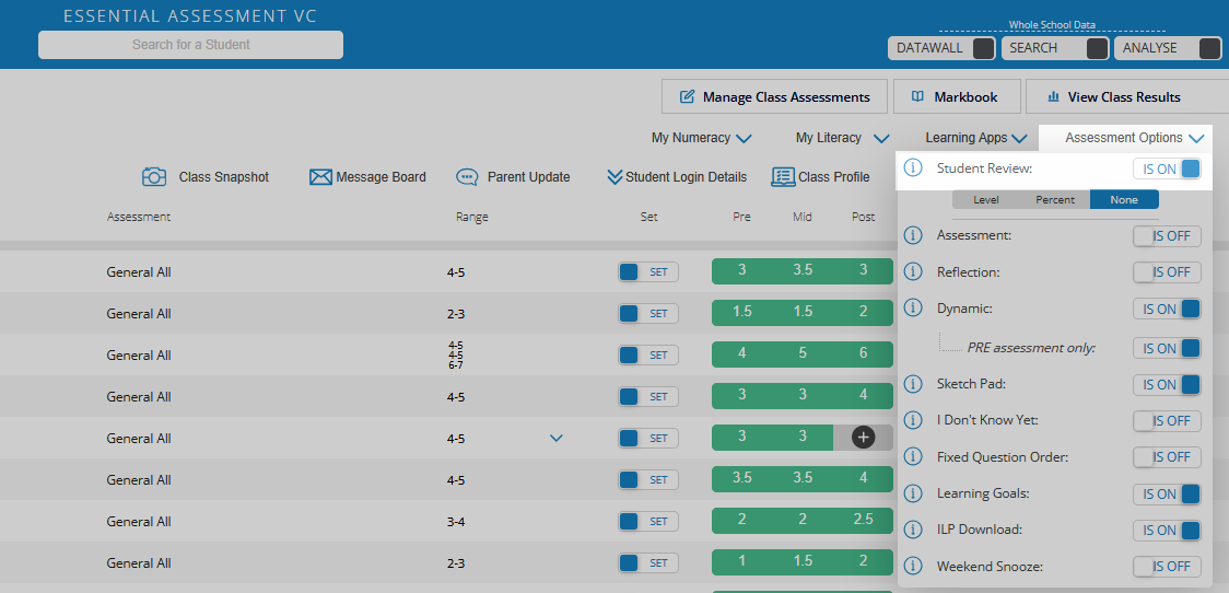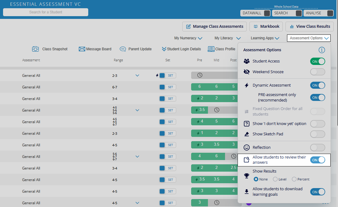 Click Assessment Options and switch the Student Review toggle to IS ON.