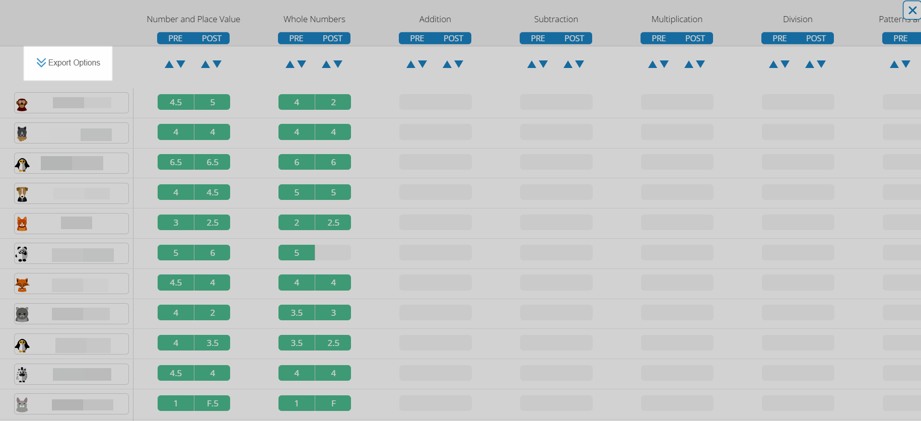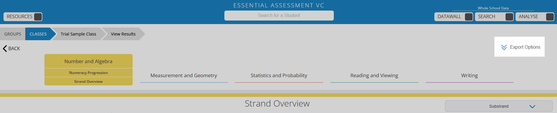 This will direct you to the Strand overview, where you can quickly see your students' results. Click Export Options to download the results.