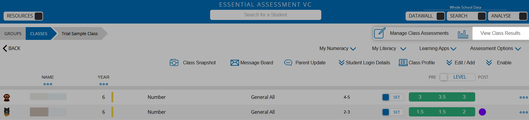 In the View Class Results section, you will be able to see the majority of our export options. To access this, click into your class and click View Class Results.