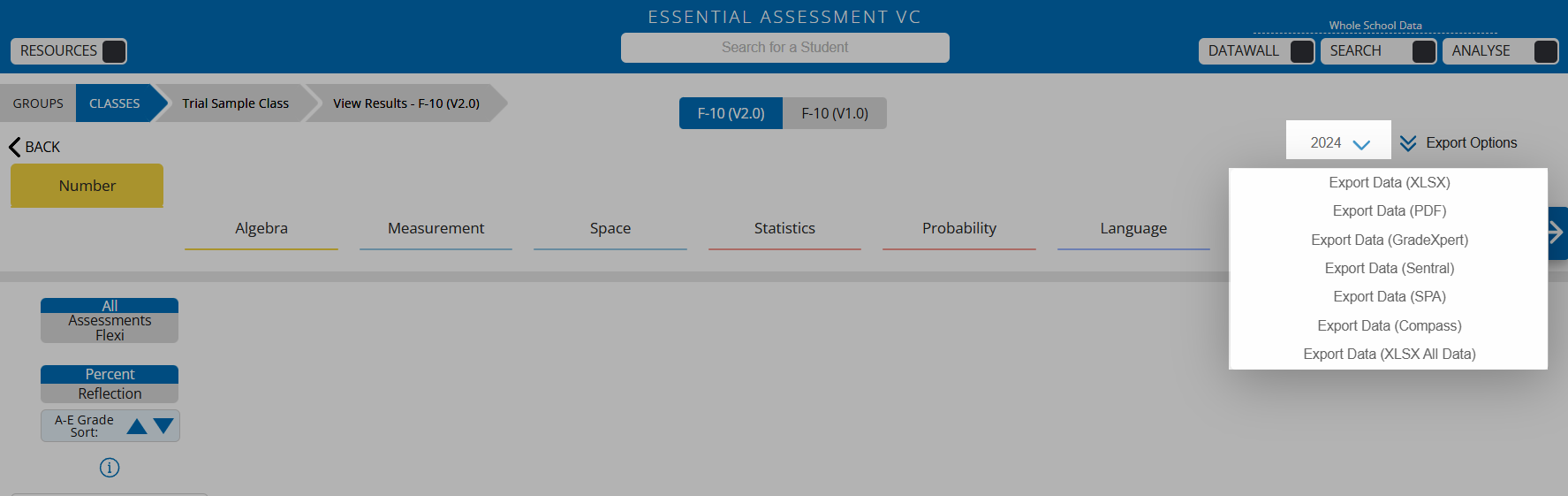 - Standard data exports, including formats to feed back into the programme your school uses (GradeExpert, Sentral etc.)