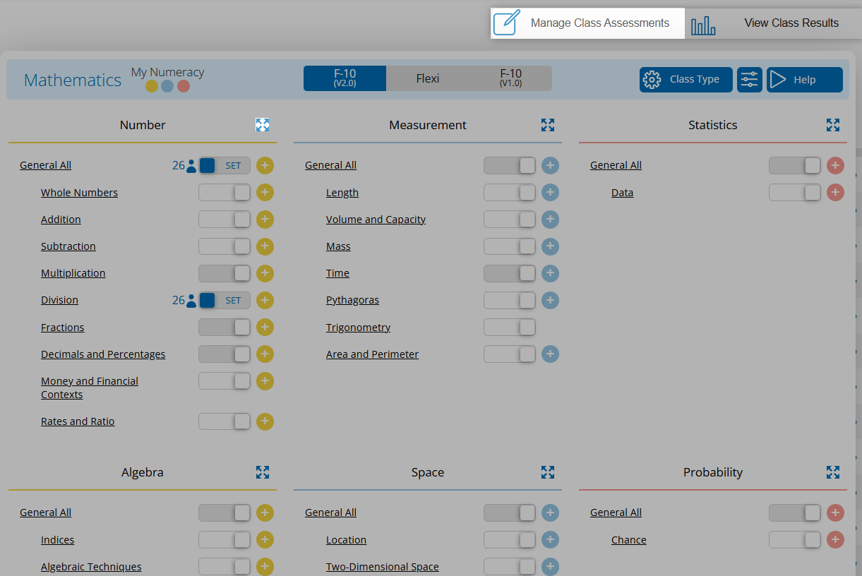 To easily export all current results for your class, click Manage Class Assessments and click the four arrows pointing outward.