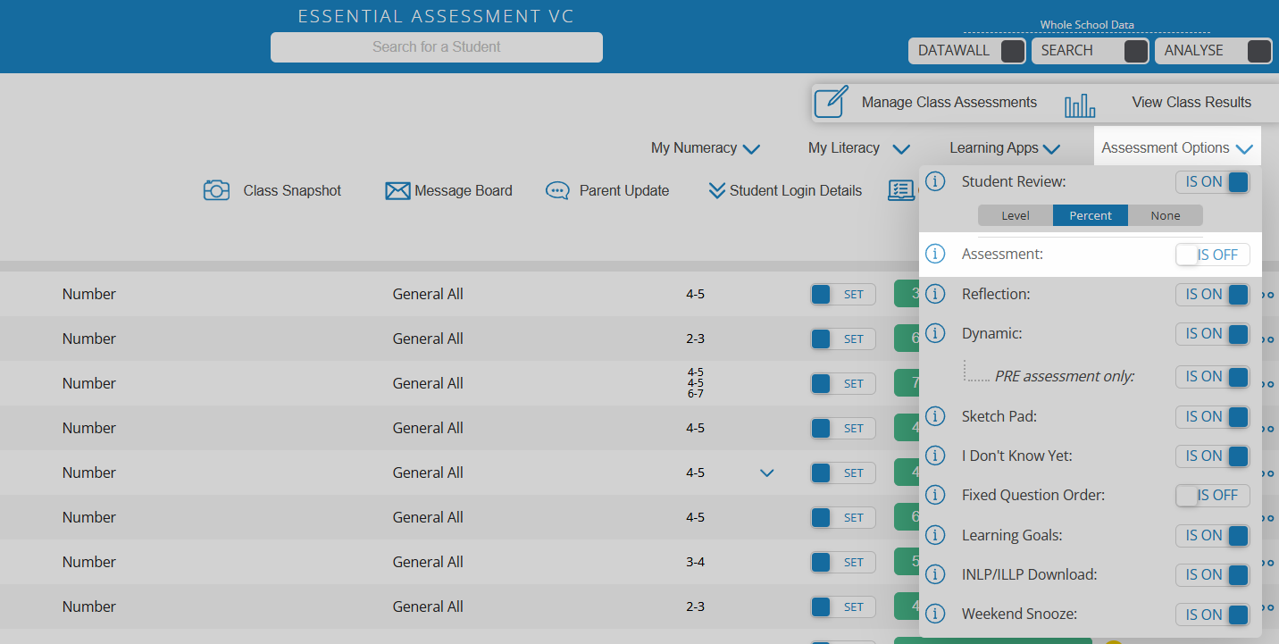 Essential Assessment prioritises the ON option. If you have students in multiple classes, and Dynamic is switched on in one class and off in your class, Dynamic will still be on for your students.