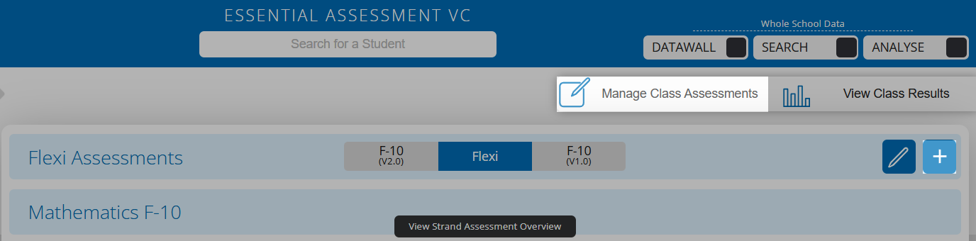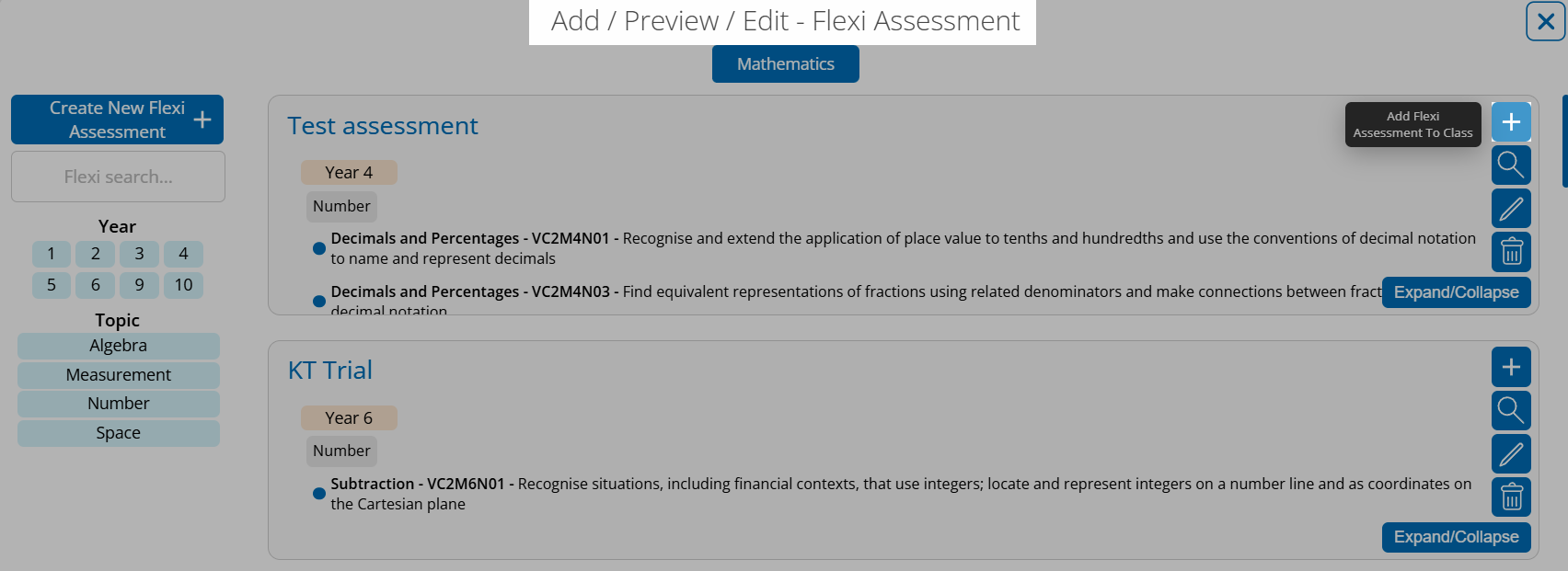 Click the + icon to add the Flexi assessment back into Manage Class Assessments.