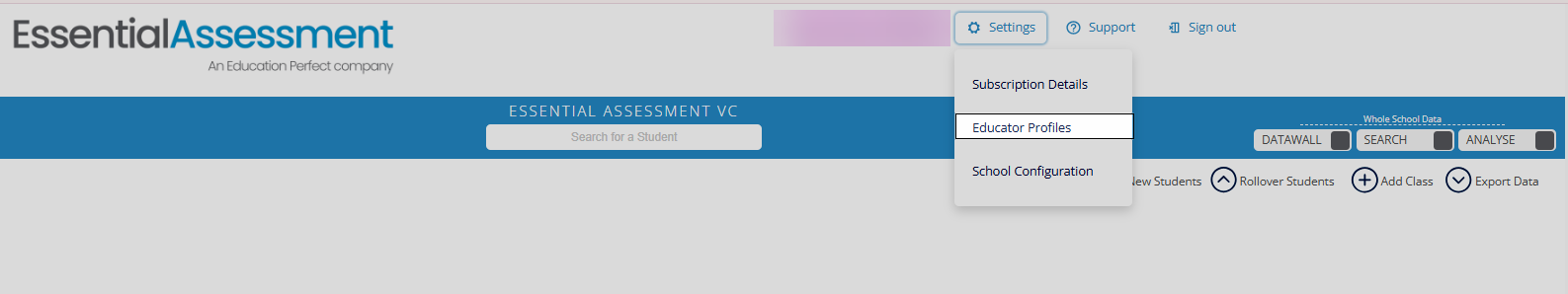 You can view all Educators set up at your school by clicking the Cog Wheel at the top right of your account and select Educator Profiles.