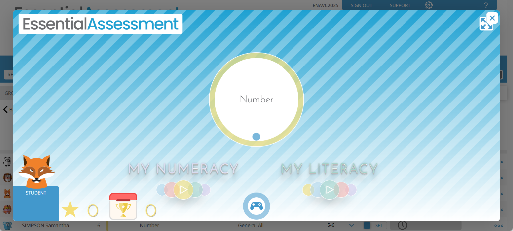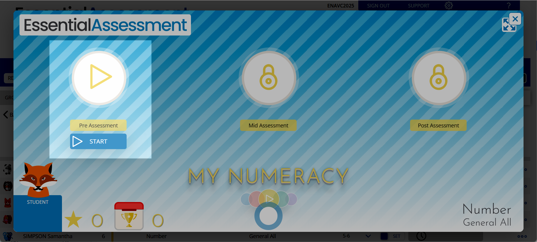 Viewing Essential Assessment from your students' point of view is a useful way to double-check your class settings are enabled as intended. You can also demonstrate to your students what they'll see when they log in.