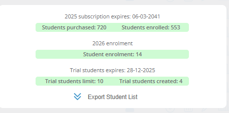 If you reach your cap and wish to add more students to your subscription, please email our friendly team at info@essentialassessment.com.au. They will arrange for the additional students to be added to your account, and for an invoice to be emailed to you.
