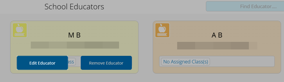 Hover over the Educator that needs to be edited.