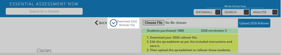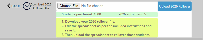 - You will need to update the rollover file with your 2026 classes, and upload this back onto the system. Please follow the instructions on the file and remove any students that do not need to be rolled over.