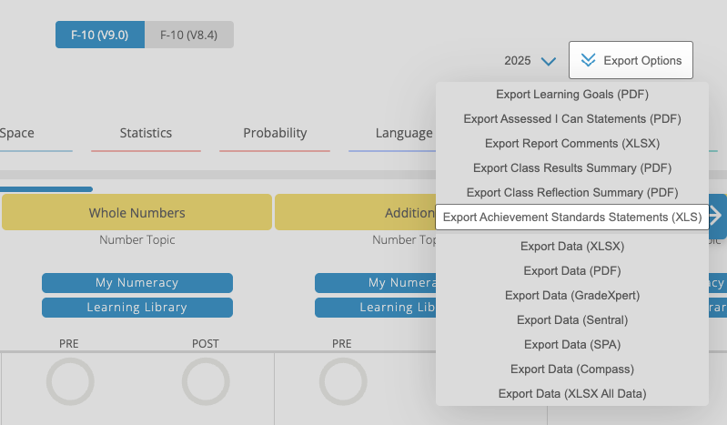 From Export Options, you'll be able to press Export Achievement Standards Statements.