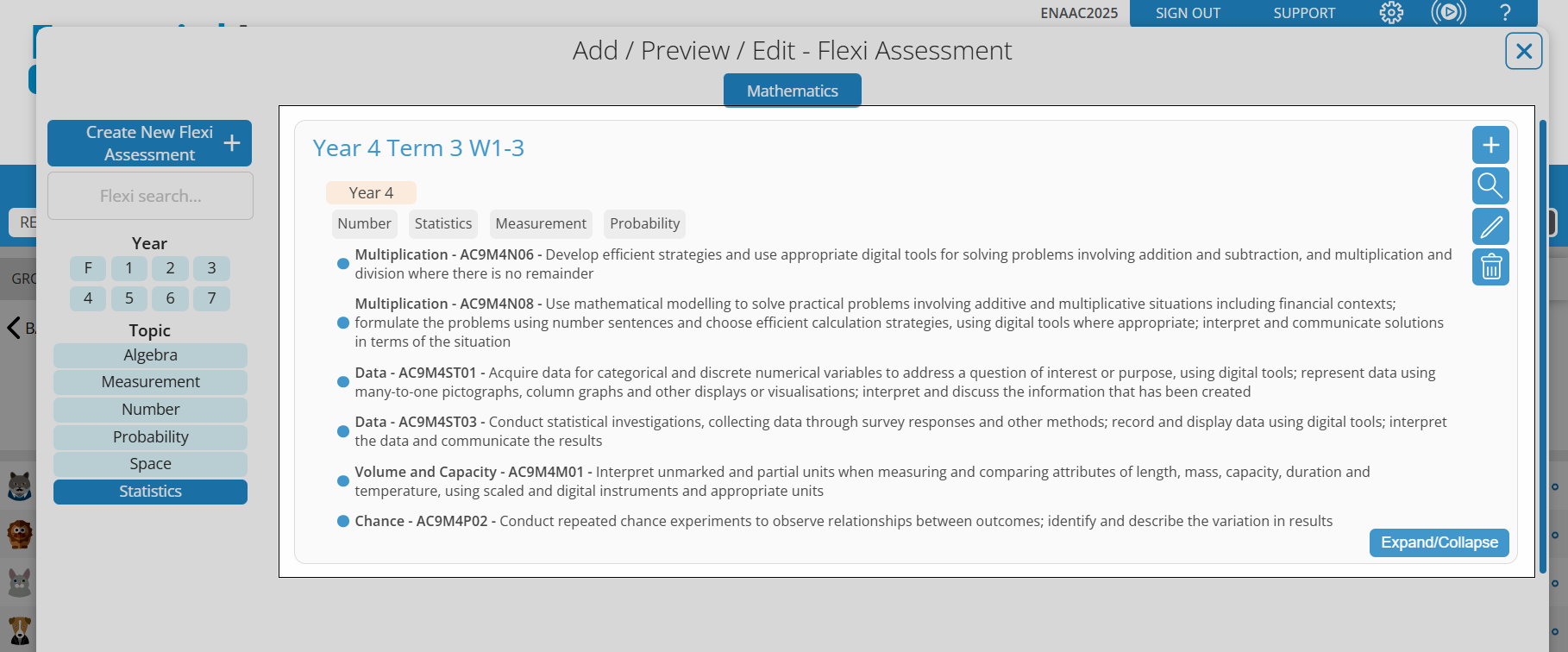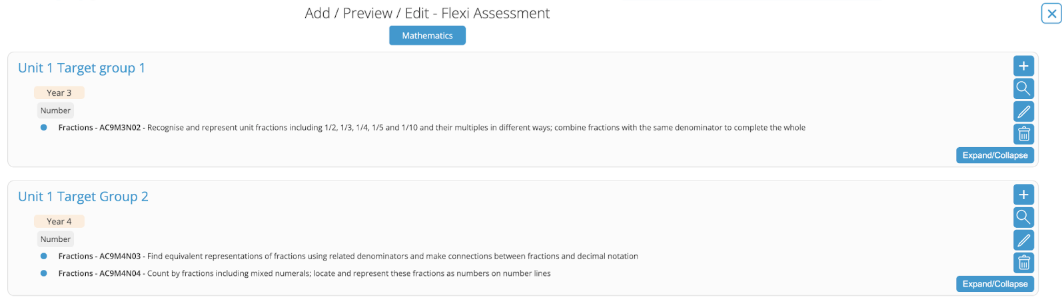 Flexi assessments allow you to create custom assessments that include content descriptions from different strands: