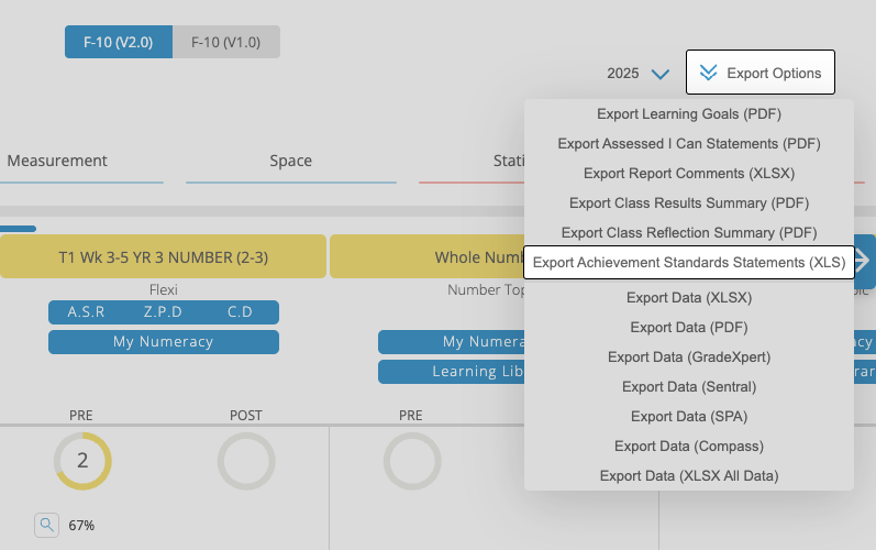 From Export Options, you'll be able to press Export Achievement Standards Statements.