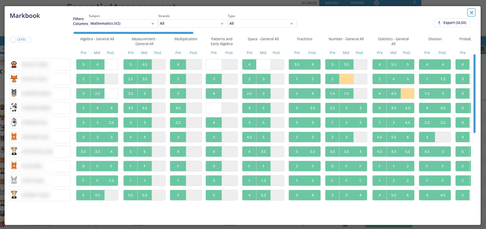The new Markbook brings all your student results together in one easy view. Instantly access assessment data and track progress across all assessments to see what your students have completed and what’s still to come. You can filter by strand, identify gaps, and export data to Excel for reporting. Designed for flexibility, the Markbook gives you a complete, real-time picture of student learning, all in one place.