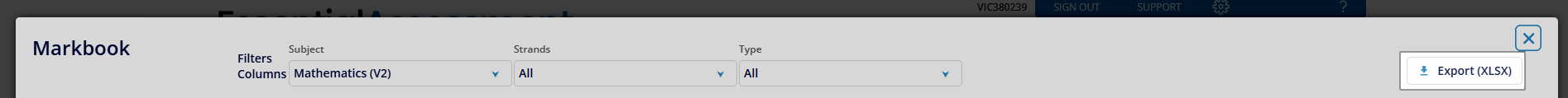 - The exported file will include data as per what is displayed on the Markbook (applied filters) at the time of the export.