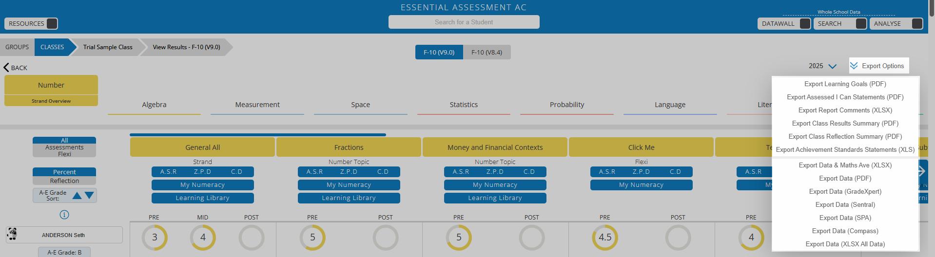 When you access View Class Results and tap on your export options, you can export your data as an Excel spreadsheet.