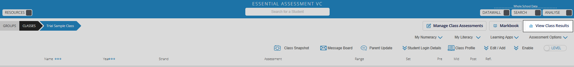 Click MY CLASS, ALL CLASSES or COHORT, depending on how you would like to view the data.