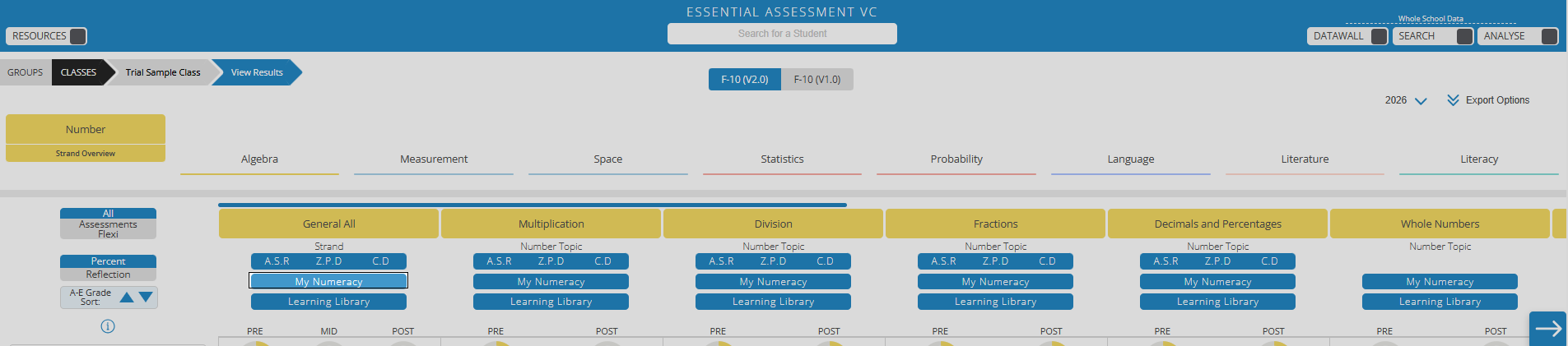Under the MY NUMERACY banner, the data will reflect how the student is progressing through the four proficiencies: Understanding, Fluency, Problem Solving and Reasoning.