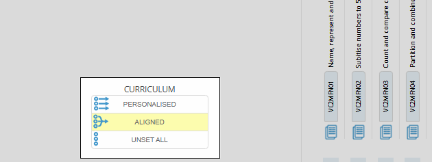 It is encouraged that you select UNSET ALL and APPLY to remove all pre-allocated activities. You will still be able to see the data and assign activities, as shown in the previous sections of this guide, after the teaching has occurred. This gives you the ability to direct access to the formative assessment based on your students' needs. You're able to reselect and apply Personalised or Aligned at any point.