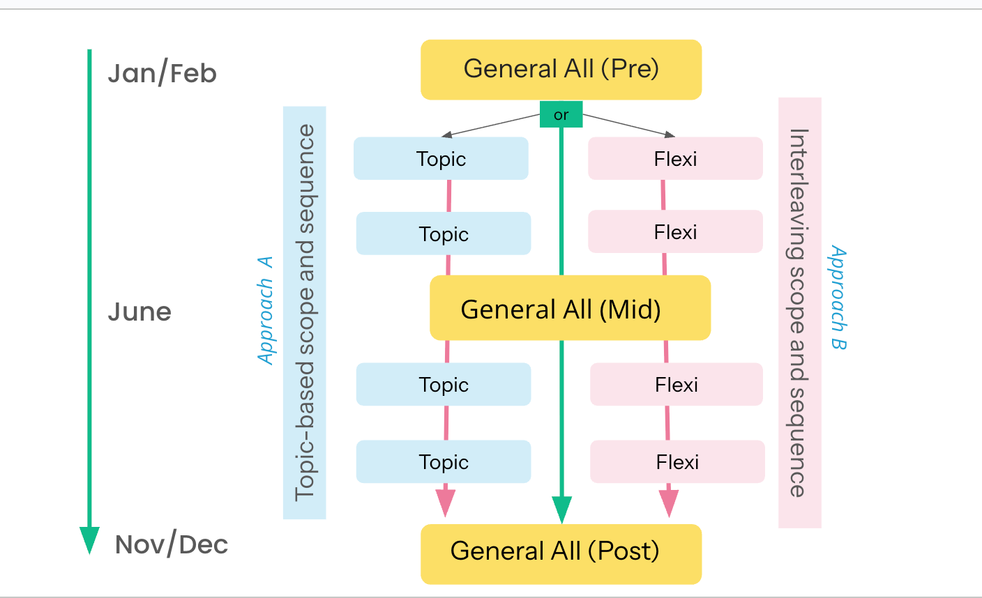 A commonly recommended approach is to use a General – All Strands assessment as a pre-assessment when a strand or concept is first introduced within an interleaving unit of work. This provides clarity about: