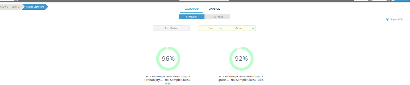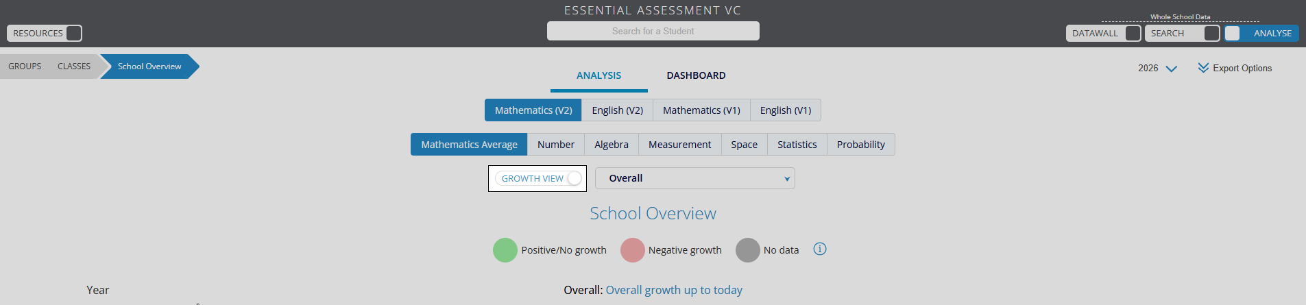The Analyse function gives you access to assessment data across your school. You can explore performance at the school, year or class level.